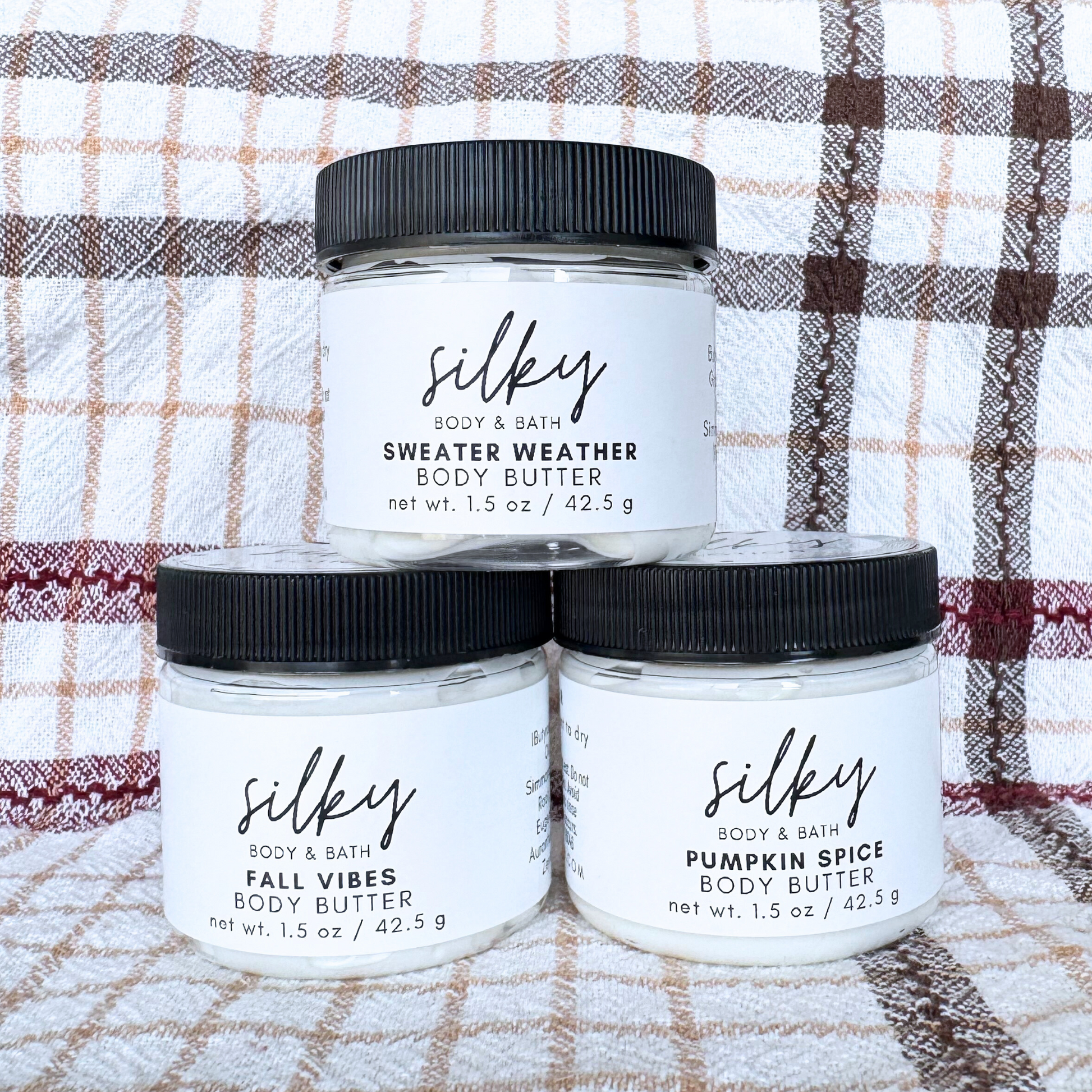 Includes three 1.5 oz jars of fall body butter! Scents included: